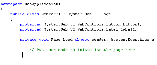 This will compile clean and run just fine -- because the "Label1" and "Calendar1" field references have been defined within the default.aspx.designer.cs file.