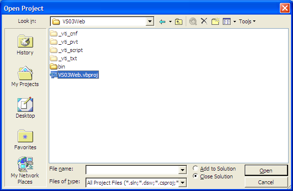 Step 5: Open the solution or project in VS 2005 and perform a project migration