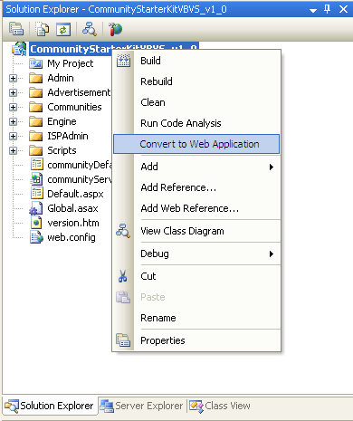 2) Right click on the root web project node within the solution explorer and choose the "Convert to Web Application" menu item. This will then iterate through each page or user control within your project and migrate all control declarations to be declared within the .designer.cs file, and event handlers to be declaratively specified on the controls in the .aspx markup.