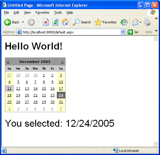 Press F5 (or Ctrl-F5) to build and run the project. Now, when a user selects a date in the