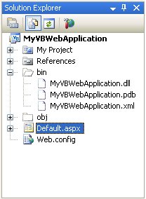 default it will have a single page (Default.aspx) as well as a web.config file. All project