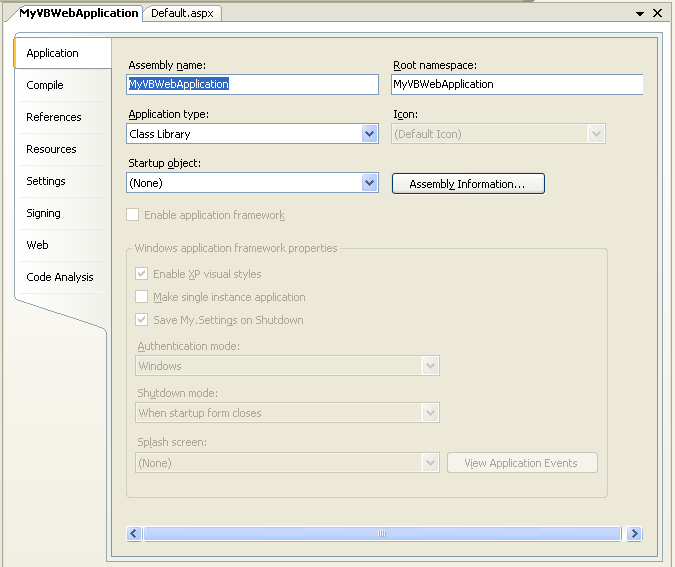 on the "My Project" node in the Solution Explorer with VB projects in VS 2005. This will then bring up