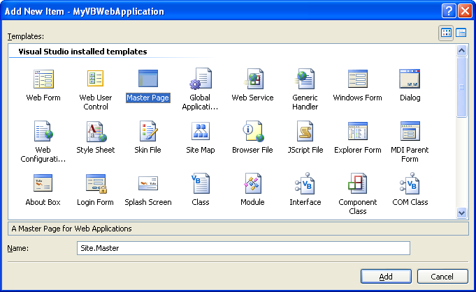 Add a Master Page to the Web Project