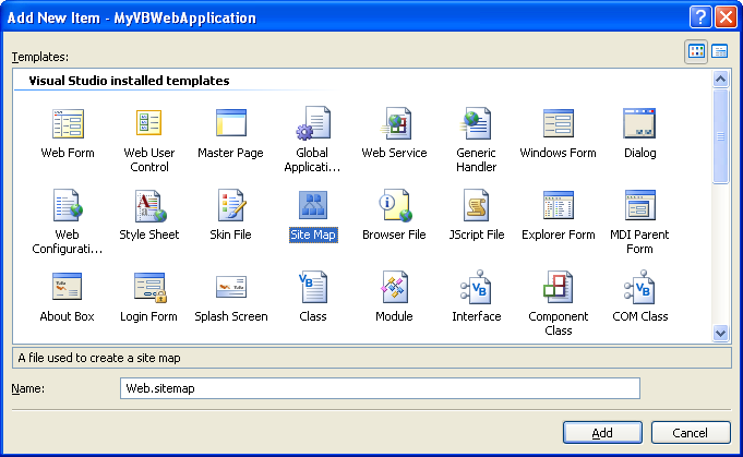 Add a Web.SiteMap to the Web Project