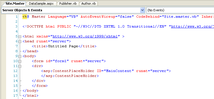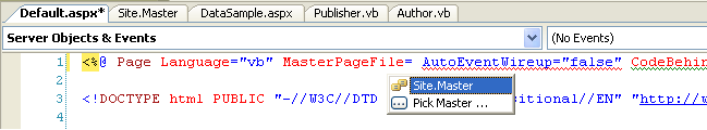 Now repeat the above process and add the MasterPage to the DataSample.aspx page as well: