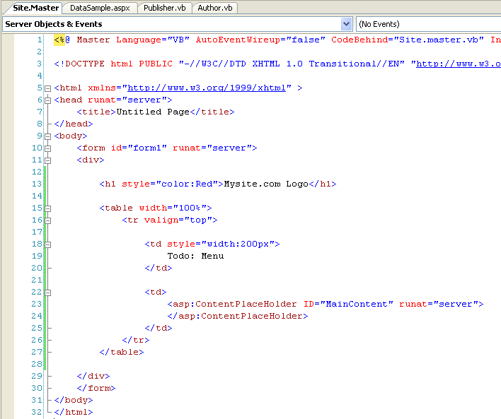 Tutorial 5: Using Master Pages and Site Navigation