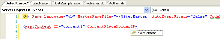 control to the page with an id of "content1". Note that VS 2005 will provide