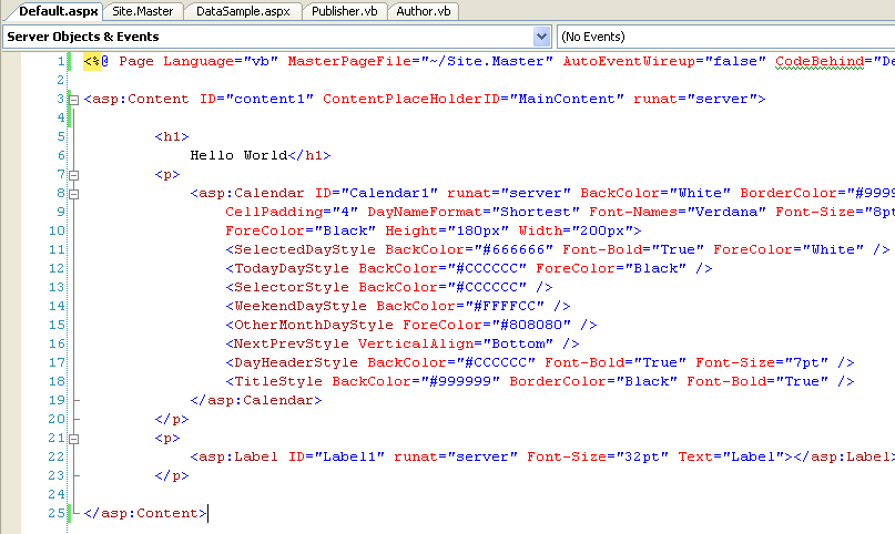 Open the default.aspx page we built in an earlier tutorial, and switch to HTML source-view. To update it to use