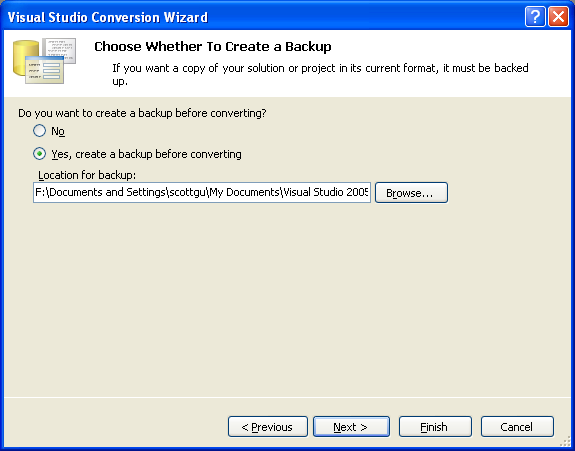 to VS 2005. One option (which is the default with the shipping VS 2005 bits) is to migrate the