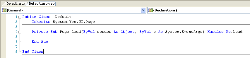 This means that any variable, method or field generated in the default.aspx.designer.vb file can be