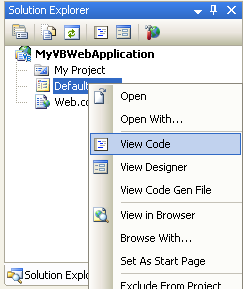 You can open up the code-behind file for your page by right-clicking on the .aspx file and choosing