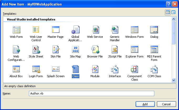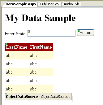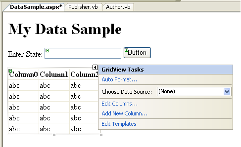 your Author class. Choose the "Auto format" task on the GridView control to make it look a little better: