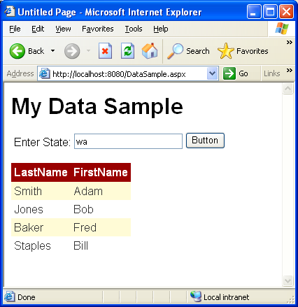Switch to design-view on the newly created DataSample.aspx page, add a simple page title,